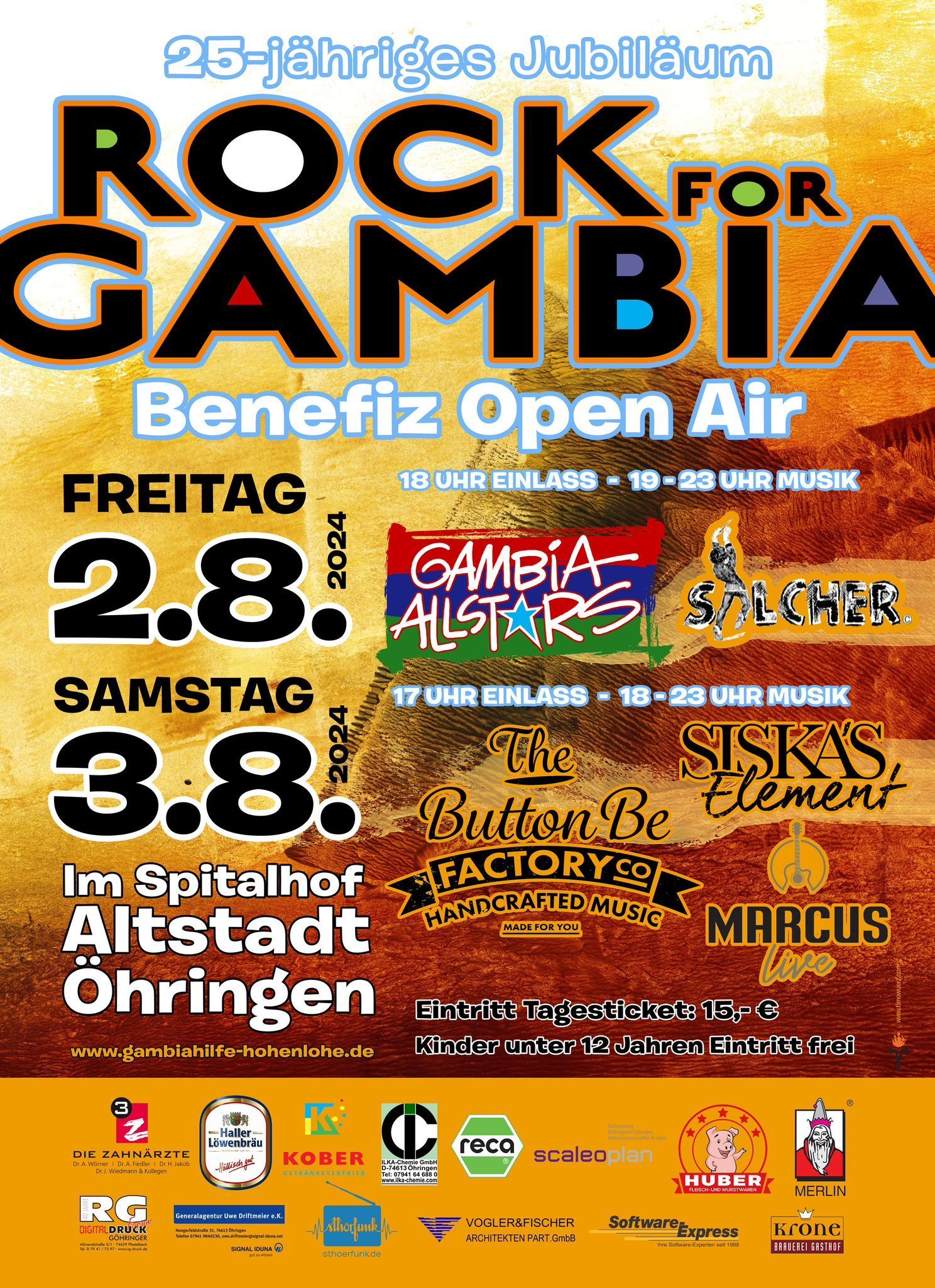 Das diesjährige Rock for Gambia Benefiz Open Air findet am 02.08.2024 und 03.08.2024 im Spitalhof Altstadt Öhringen statt.