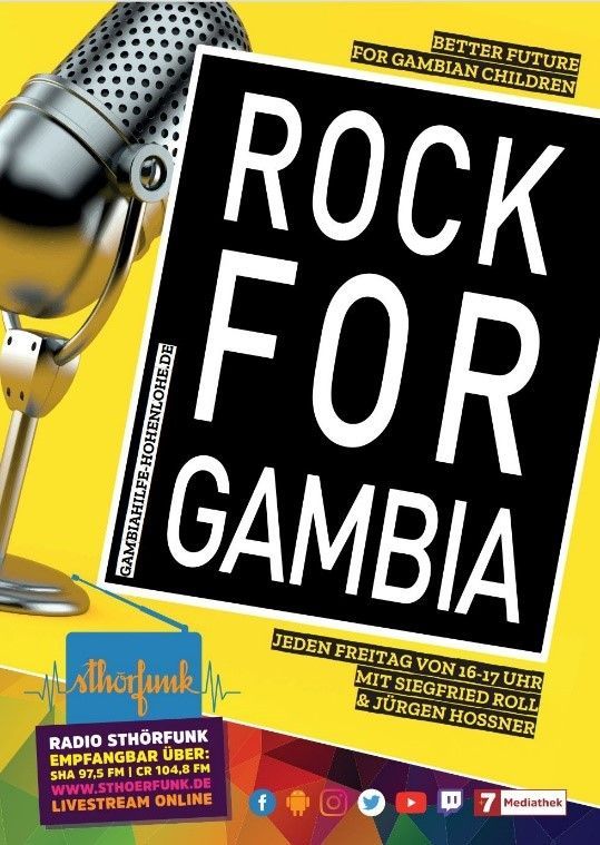 Unsere Radiosendung "Rock for Gambia" bei Radio StHörfunk (SHA 97,5 FM, Crailsheim 104,8 FM oder per Livestream online über www.sthoerfunk.de).